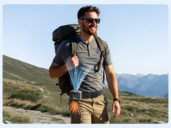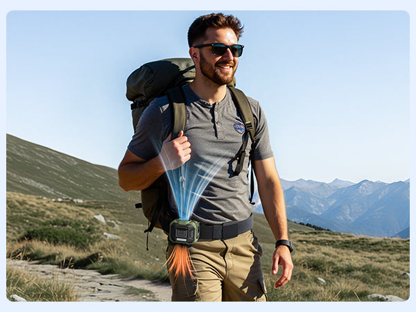 · Tactical-Grade Resilience: Our portable waist fan withstands 5ft (1.6m)drops via 2mm shock-absorbing shell.Built for rugged terrain,jobsites,and outdoor expeditions