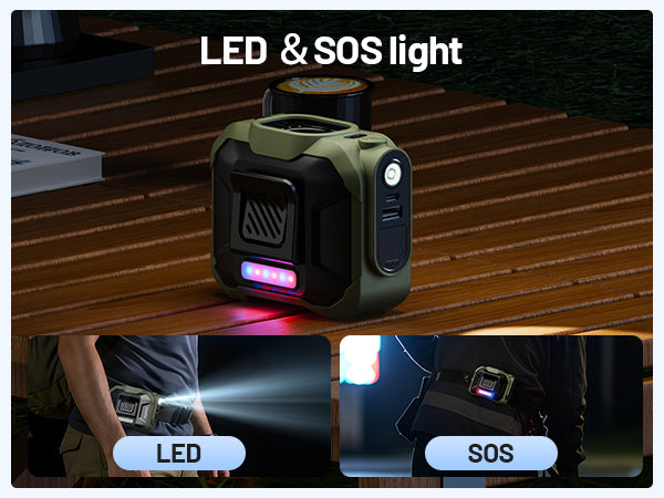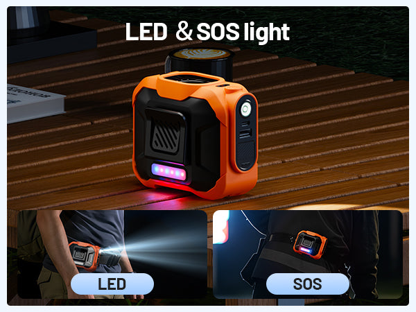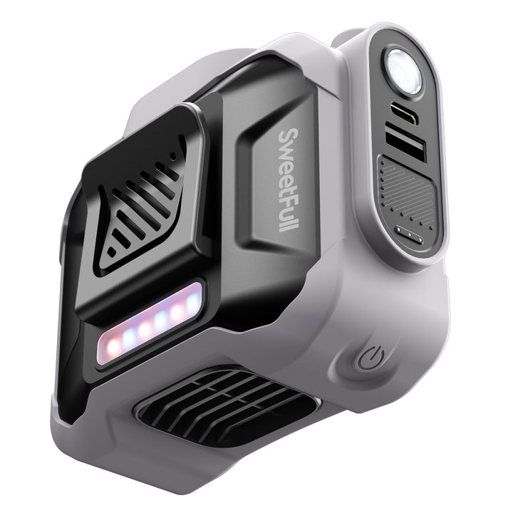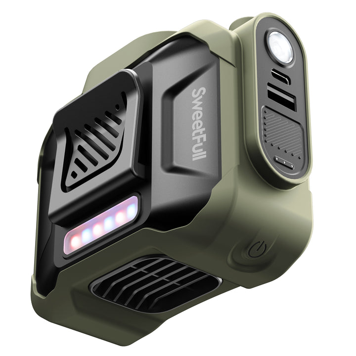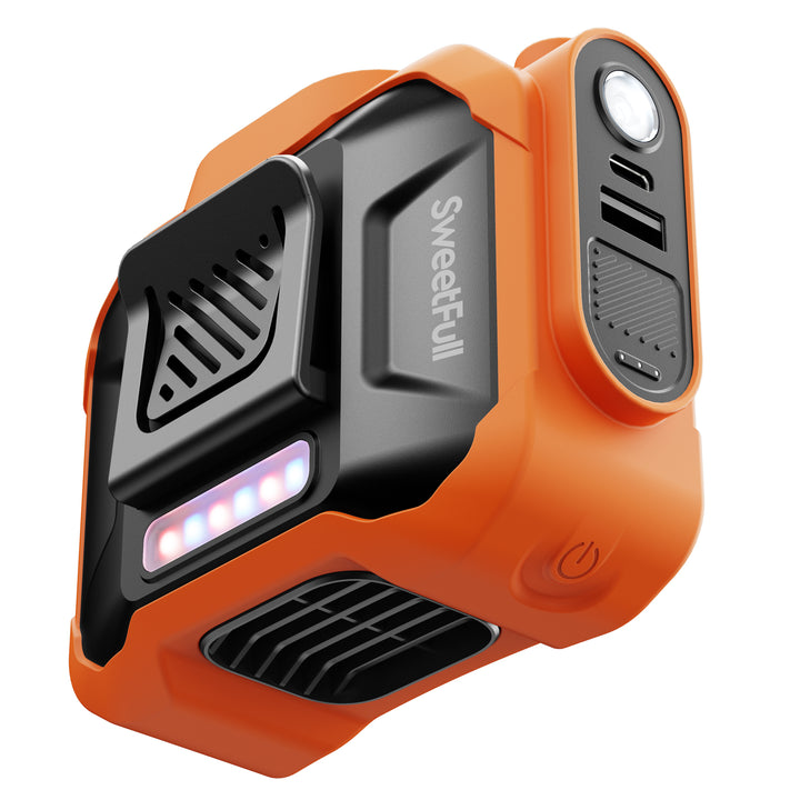· 5-in-1 Cooling Hub:Dual USB-A/C ports charge devices anytime/urgent.Double-sided clip on fan and the Inner one mount on belts, desks,tents.One-click switches: waist fan,desk cooler,clip breeze,LED light,or SOS.Built for blackouts,camping,offices,travel