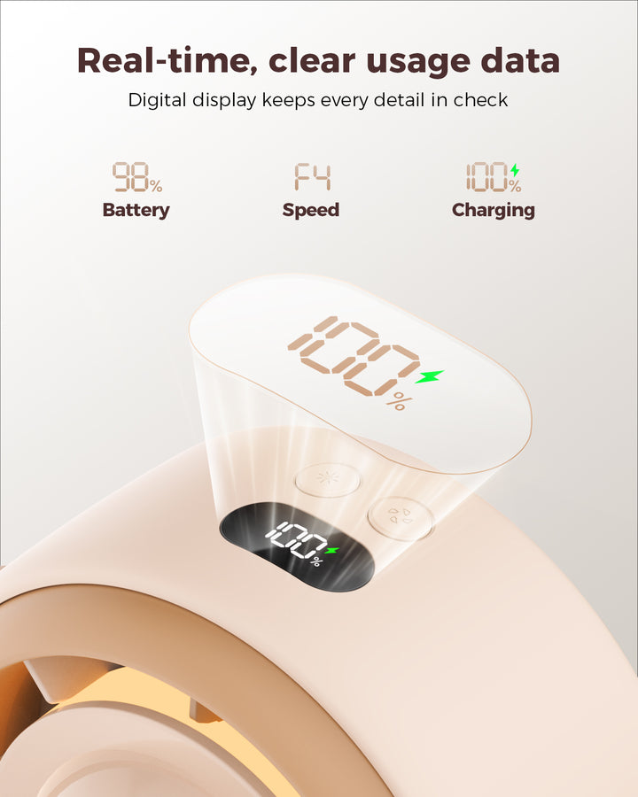 Smart LED Display & Battery Alerts: Easily track battery life and speed with the LED display. Low-battery alerts ensure uninterrupted cooling