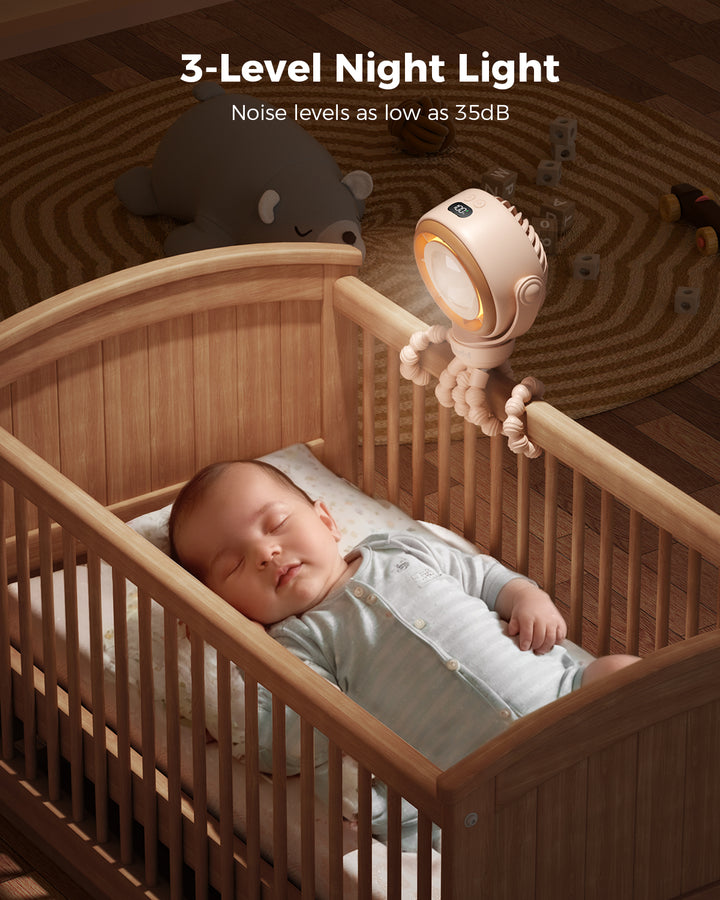 Whisper-Quiet & 3-Level Night Light: Ultra-quiet 25dB operation and a 3-level night light ensure peaceful sleep for your baby, whether at home, in the stroller, or on a trip