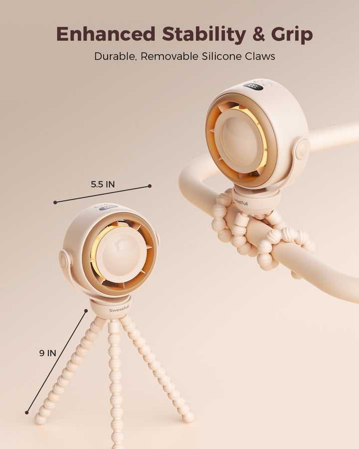 SWEETFULL Baby Stroller Fan - 4000mAh Rechargeable 4-Speed Quiet with LED Display & Night Light, Mini Portable 360° Clip On Safe Fan for Car Seat, Crib, Travel