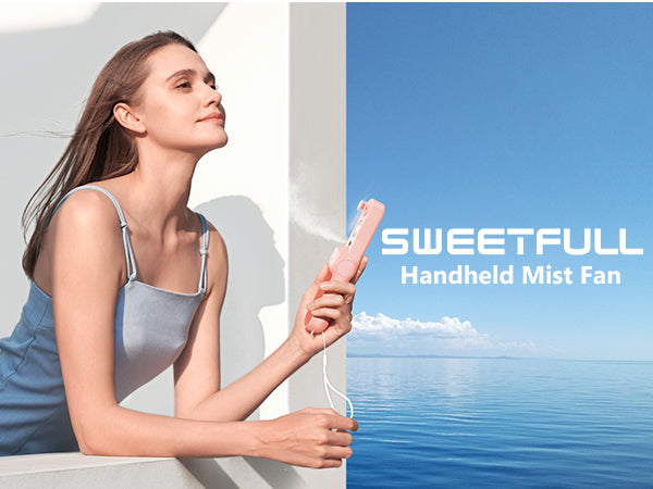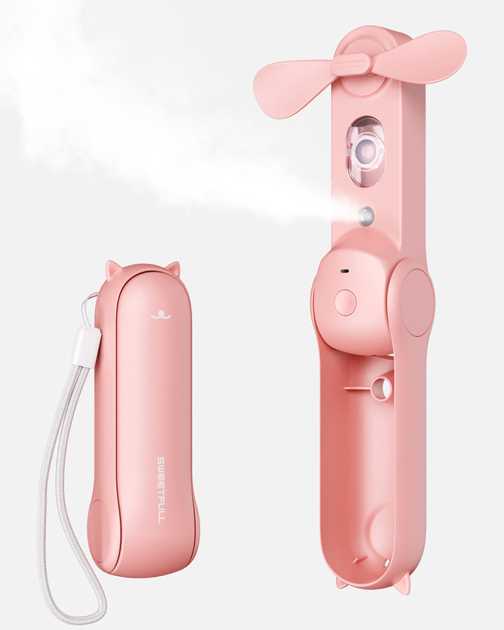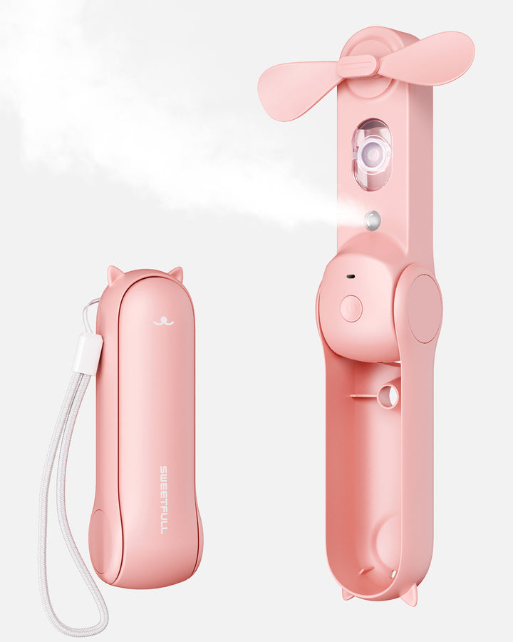 Upgrade Spray Fan - SWEETFULL Portable Fan with a 15mL water tank (use mineral water) and spray function (upgraded with larger spray volume). Long press the button for 2 seconds to turn on/off mist mode, providing a refreshing cooling effect to your skin (spray duration is 7 minutes, note: mist function will stop automatically after 5 minutes, please restart if you need to spray again).