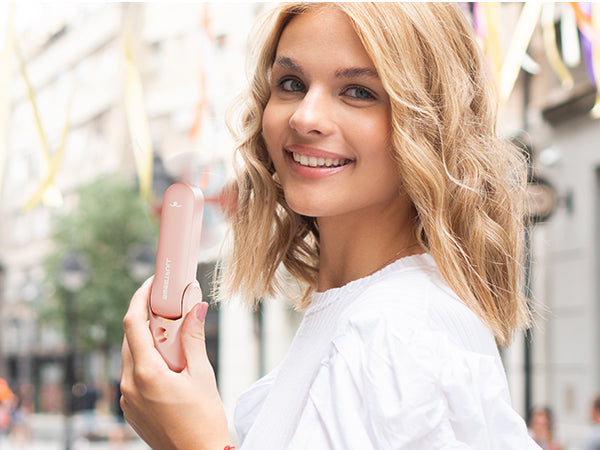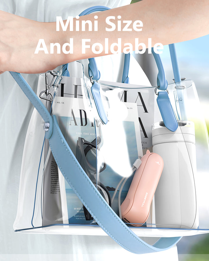 Rechargeable and Safe - This handheld fan only takes 1.5 hours to fully charge and comes with soft blades that automatically stop working if accidentally touched, ensuring your safety. The package includes a portable handheld fan, charging cable, water bottle, lanyard, and user manual.