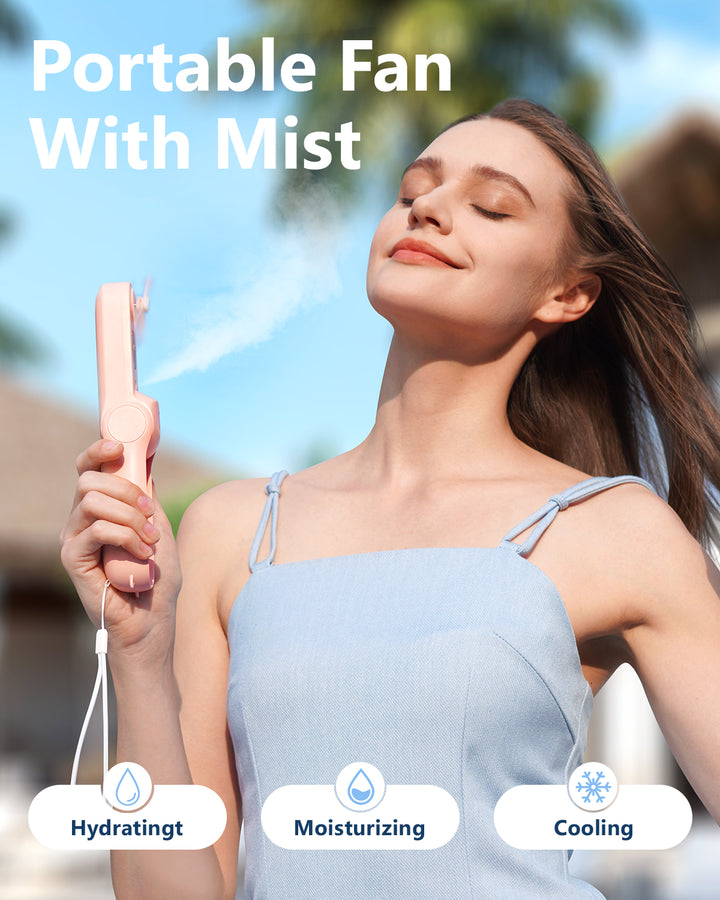 SWEETFULL Misting Fan Portable, Handheld Personal Mister Fans, Small Fan Rechargeable, Mini Spray Water Mist, Kids Women Portable Fans For Travel, Outdoors, Hiking, Camping Home Office